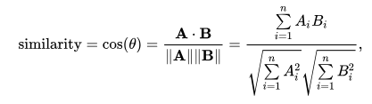 cosine_similarity(A, B) = (A · B) / (|A| × |B|)