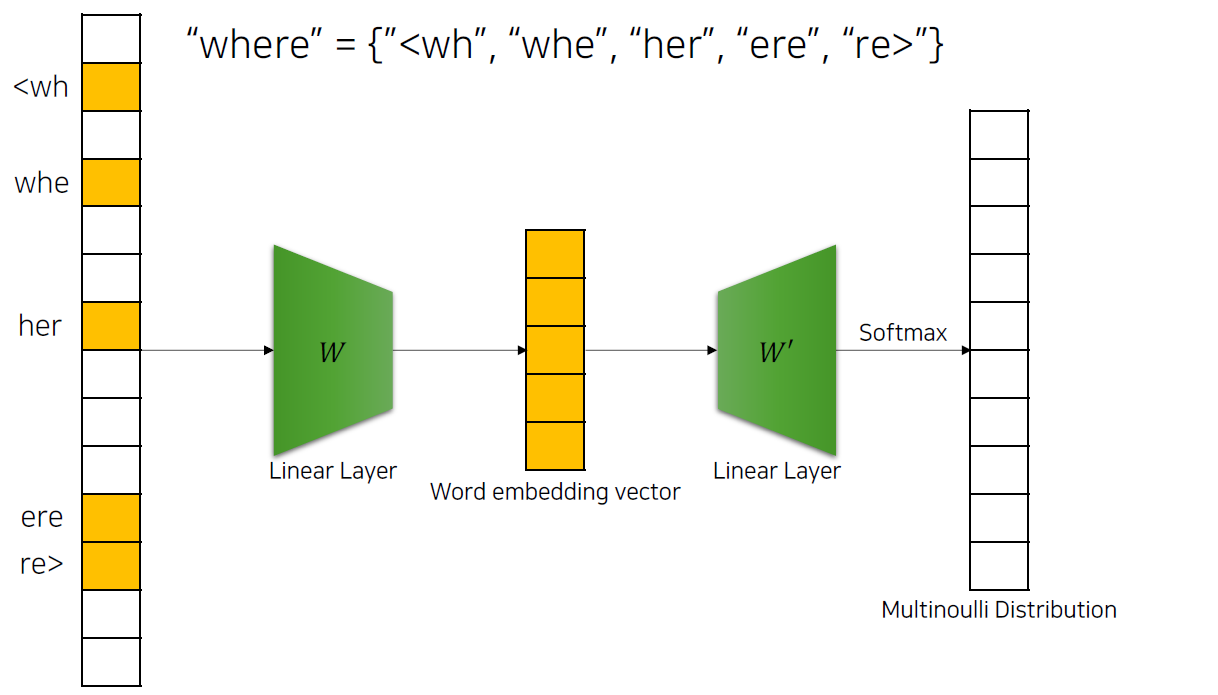 FastText의 서브워드 기반 임베딩 생성 과정