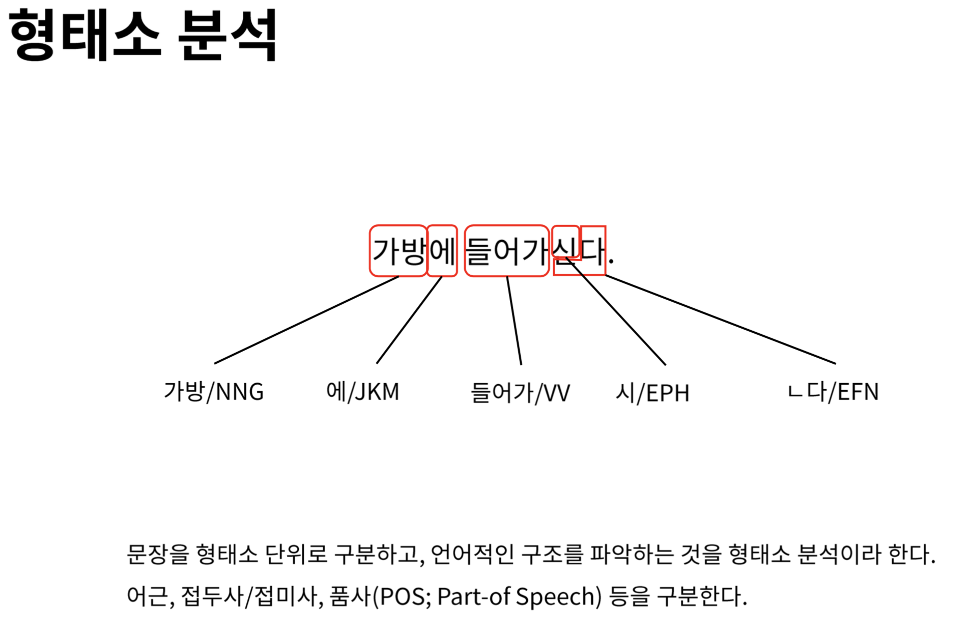 한국어 문장의 형태소 분석 과정 예시